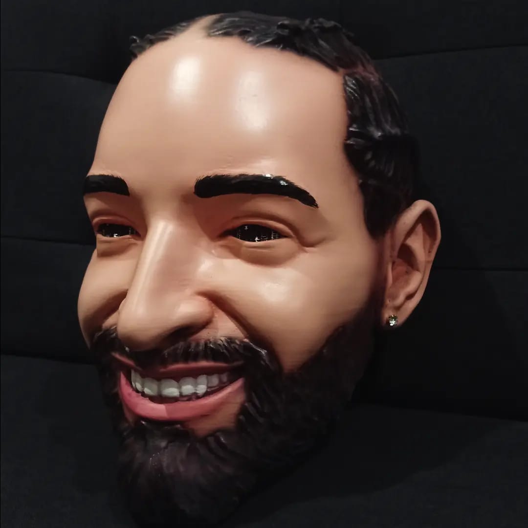 Fabricado en resina plástica rígida de alta resistencia, cada detalle del rostro (sonrisa carismática, barba bien definida, cejas marcadas y peinado característico) está cuidadosamente pintado a mano con acabado mate para un realismo sorprendente. En su interior encontrarás un acolchado de espuma EVA, que garantiza un ajuste cómodo y firme en cualquier tamaño de cabeza.